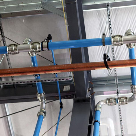 INSTALACION DE TUBERÍA NEUMÁTICA EN ALUMINIO AZUL O ACERO INOXIDABLE MARCA TRANSAIR DE PARKER YA SEA COMO PARTE DE UN PROYECTO TOTAL DE AIRE COMPRIMIDO O COMO RED SOLA.