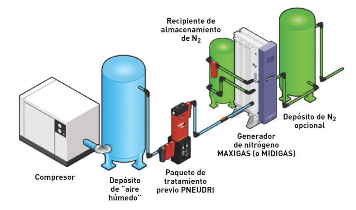 Sistema diseñado para entregar el gas con la calidad requerida por el proceso.