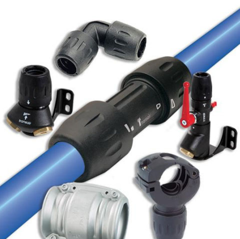 INSTALACION DE TUBERÍA NEUMÁTICA EN ALUMINIO AZUL O ACERO INOXIDABLE MARCA TRANSAIR DE PARKER YA SEA COMO PARTE DE UN PROYECTO TOTAL DE AIRE COMPRIMIDO O COMO RED SOLA.